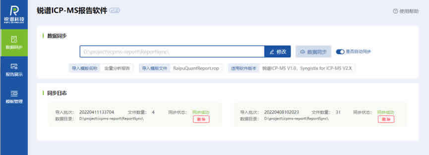 數(shù)據同步從銳譜 ICP-MS控制軟件的數(shù)據集中獲取數(shù)據,保證檢測數(shù)據的真實有效性;動態(tài)感知數(shù)據集的變化并同步數(shù)據,保證數(shù)據的及時性。對從銳譜 ICP-MS控制軟件獲取的數(shù)據進行物理存儲,可以被重復使用;減少對原軟件的依賴,也提高報表展示的效率。