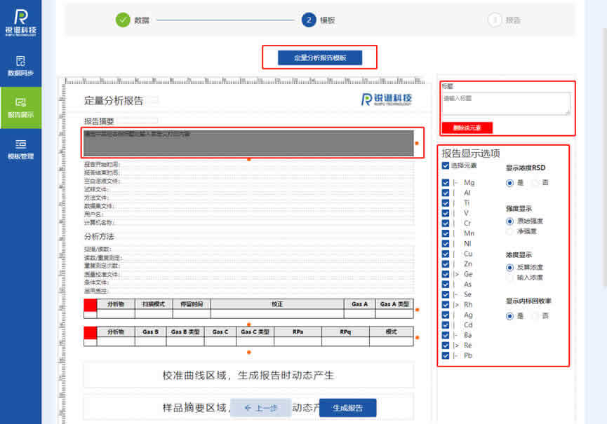 合肥銳譜科技有限公司的銳譜ICP-MS控制軟件為質譜儀檢測數(shù)據提供了豐富報告模板和模板定義工具,從數(shù)據獲取的角度完全滿足用戶的需要。“銳譜ICP-MS報告軟件”產品是銳譜ICP-MS控制軟件的配套報告軟件,在原來控制軟件的報告模板功能基礎上進行增強,以所見即所得的原則設計報告模板及呈現(xiàn)數(shù)據報告,為用戶提供更好的應用體驗。